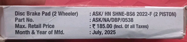 Upgrade your Honda Shine's braking performance with the premium Disc Pad Honda Shine New Model, proudly brought to you by SNL MART. Designed specifically for the latest Honda Shine model, this disc pad is engineered to deliver exceptional stopping power, durability, and reliability. Manufactured by the trusted brand ASK, this product ensures a smooth and safe ride every time.